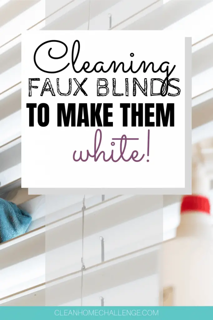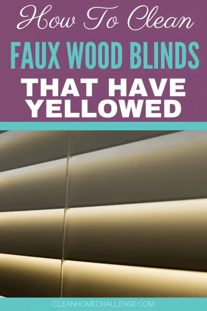 To clean your faux wood blinds that have yellowed you will need equal parts bleach to water. Fill a bathtub with the equal part mixture and place your blinds into the bath to soak and they will turn white again.